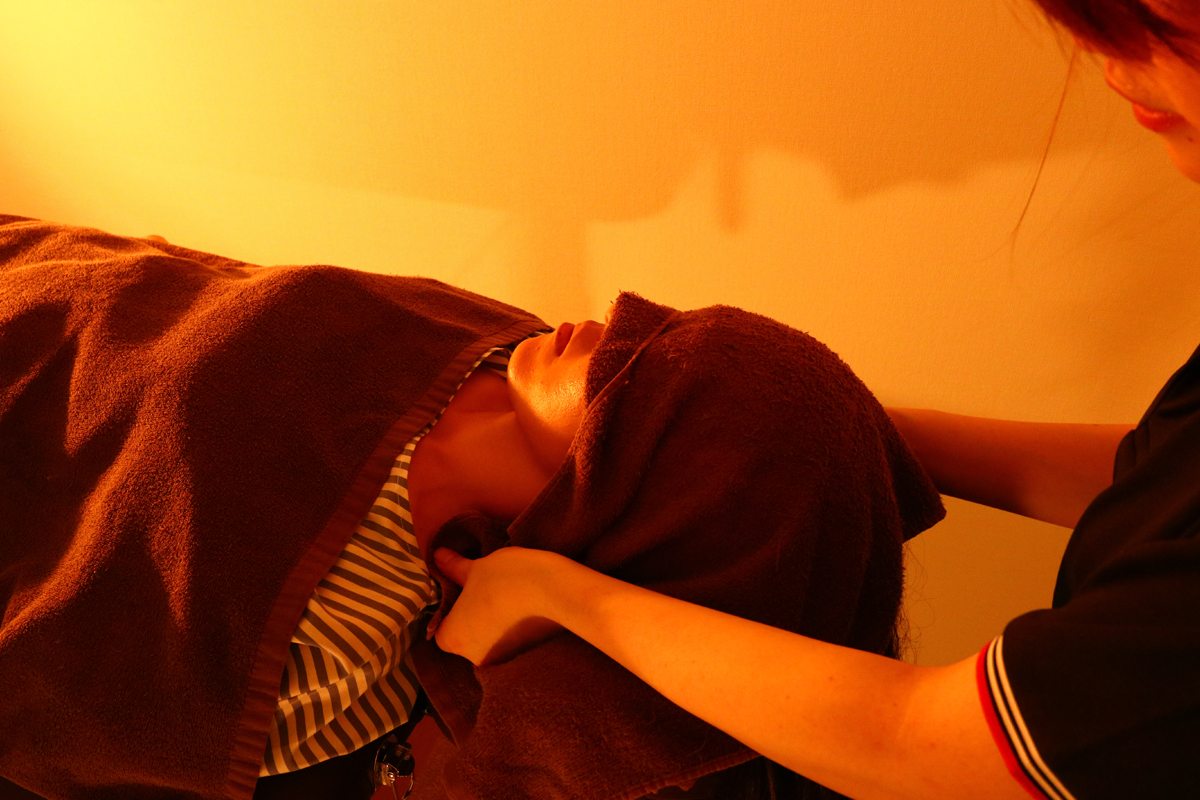 当店ではすべてのコースを手技で行っています。手で直接ふれることで、そのとき一番つらい箇所を的確に感じ取り、症状の緩和を目指しています。指や手根、ヒジを使った指圧や揉みにより、表面だけでなく奥で凝り固まった筋肉やツボにアプローチし、適度な力加減でしっかりとほぐしていきます。