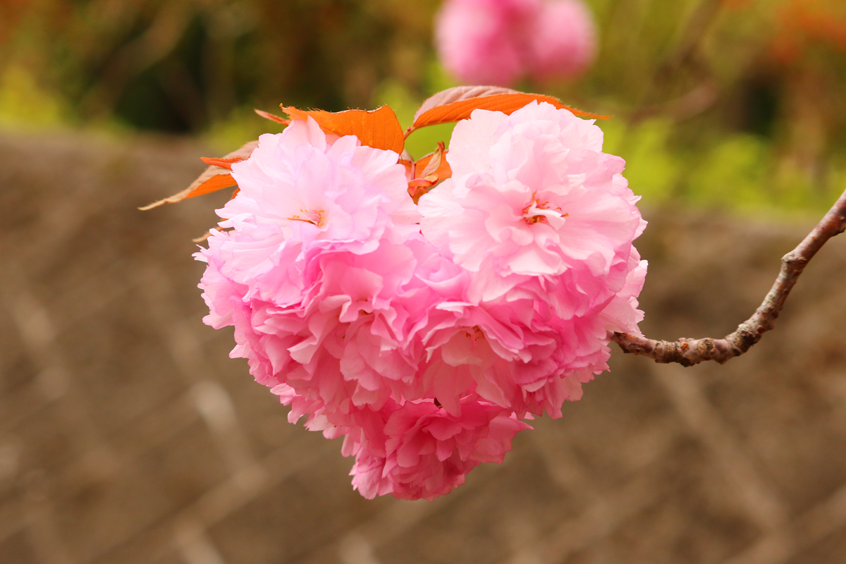 春の桜、新緑をわたる風